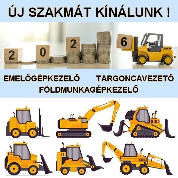 2026-ban is jelentkezhetnek legnépszerűbb szakmai képzéseinkre. Tekintse meg tájékoztatónkat a targoncavezetői, az emelőgépkezelői és a földmunkagépkezelői tanfolyamokról ITT.