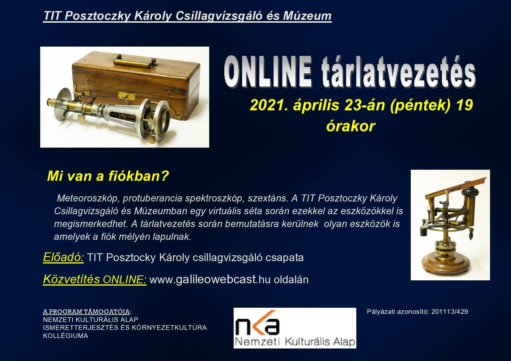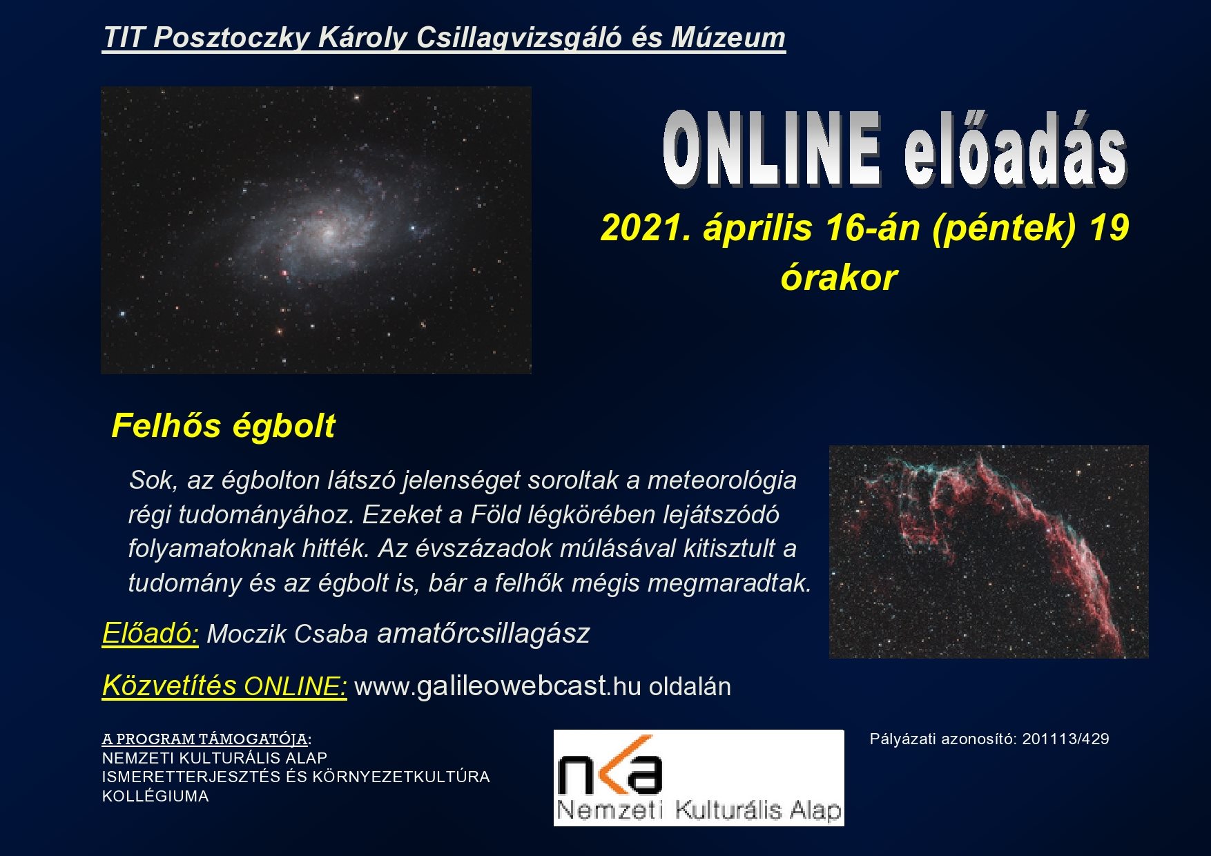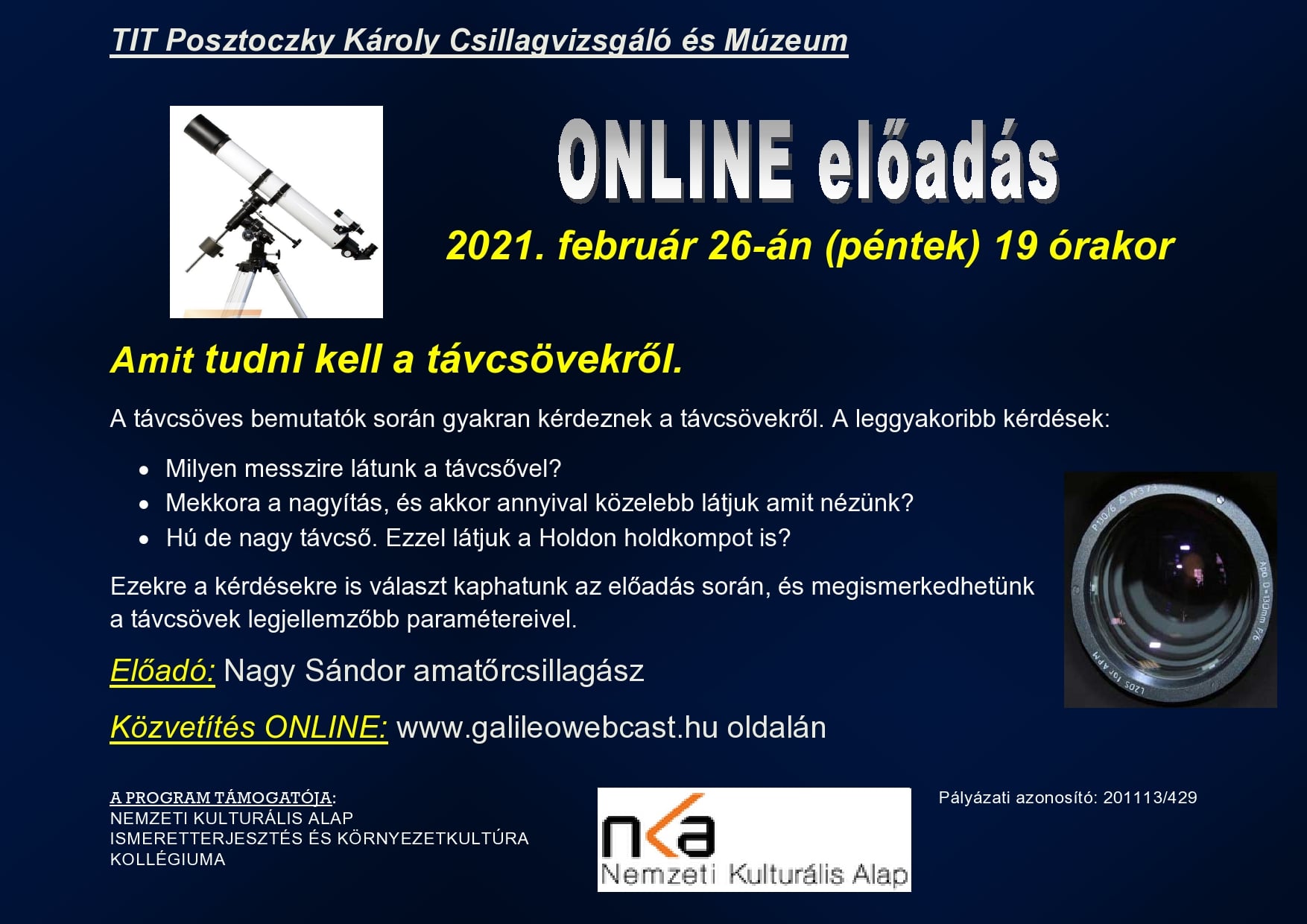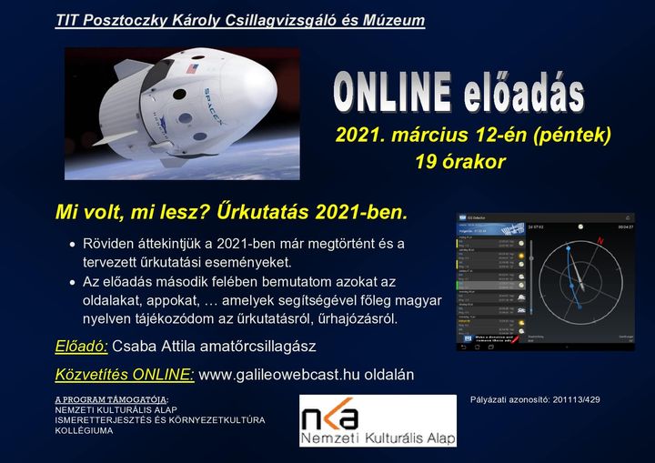 Online előadássorozat és távcsöves bemutatók