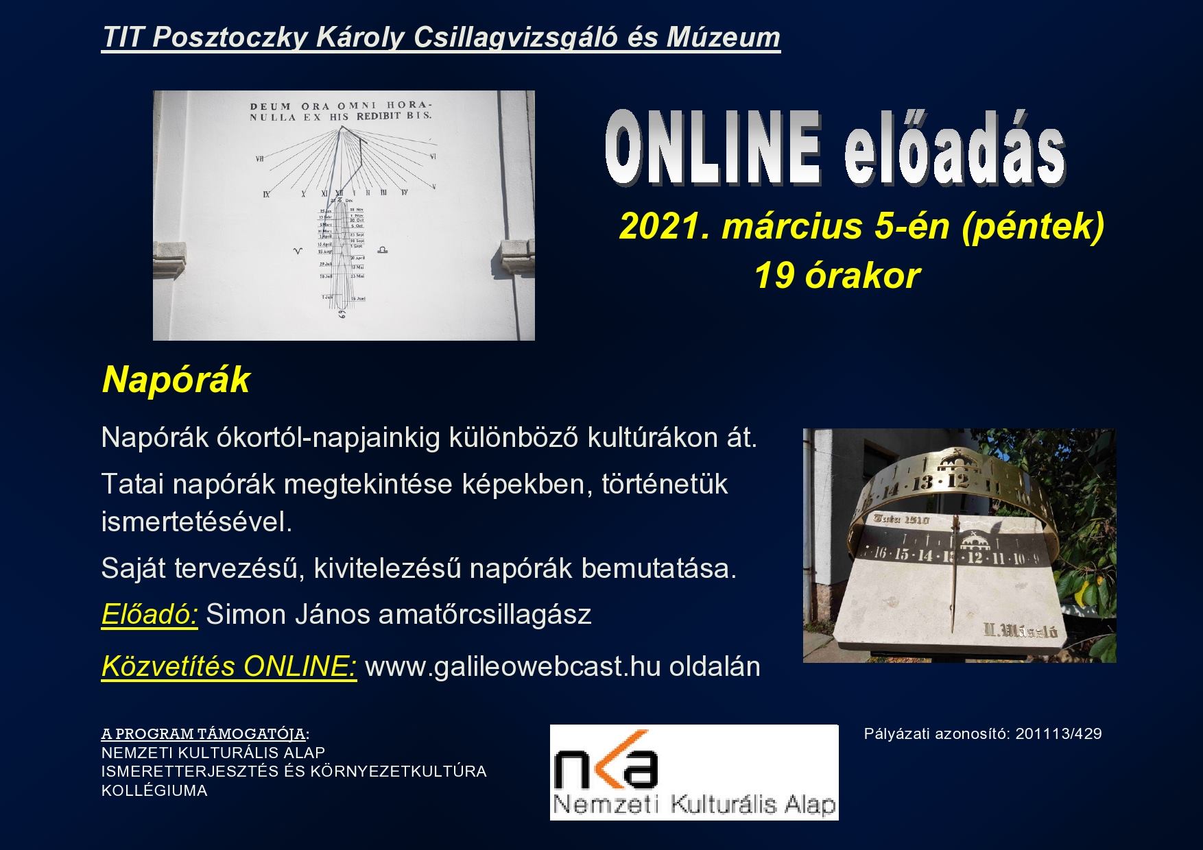 TIT Posztoczky Csillagászati ismeretterjesztő online kurzus, tavaszi tábor, tagyosi csillagdák és a környéki napórák nyomában túra és Napóra tárlat a várban