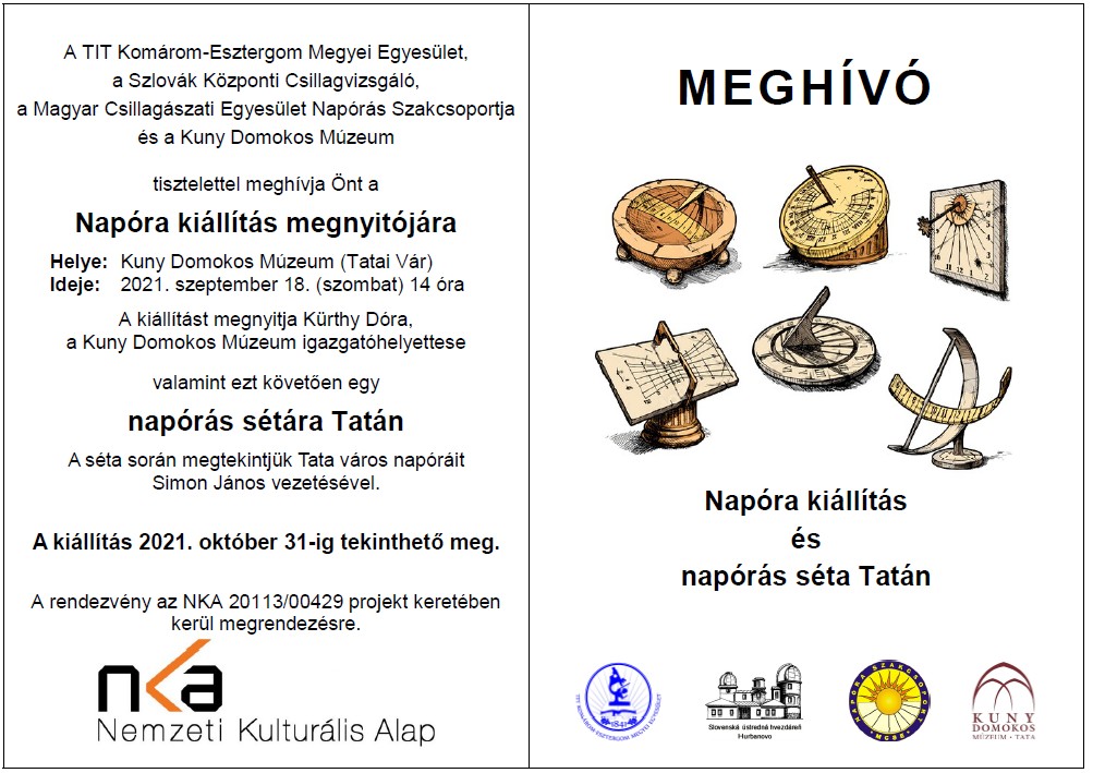 Napórák kiállítás és tárlat a tatai Várban (A Tatai TV híradása: https://www.facebook.com/watch/?v=279096620494754 )